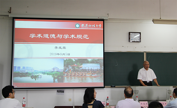 开学典礼结束后,李友荣教授为研究生作了学术道德与学术规范的讲座,朱文琼和李玉飞为在场研究生作了新生入学教育。
