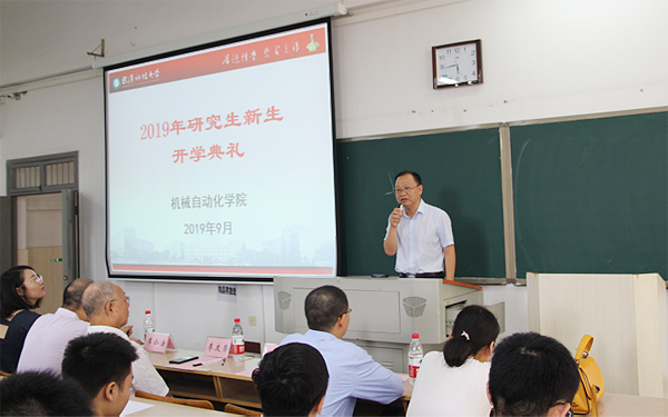 武科大网讯(通讯员 李玉飞)9月5日,机械自动化学院2019级研究生新生开学典礼在主楼0302教室举行。机械自动化学院院长曾良才,全国模范教师、湖北省五一劳动奖章获得者、机械工程系李友荣,机械自动化学院副院长汪朝晖,机械自动化学院院长助理李公法,工业工程与制造系付婷出席开学典礼,院研究生教学秘书朱文琼、研究生辅导员李玉飞及207名硕博研究生新生参加开学典礼。院党委副书记李婵娟主持开学典礼。