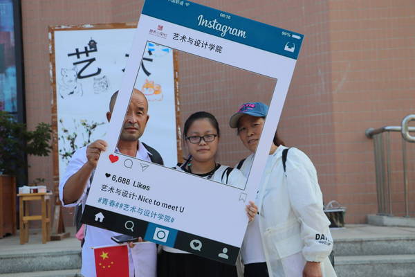 活动所用艺术作品均由艺术学院学生亲手绘制,“艺”路有你活动采用专业学生设计的人形立牌,其中代表学院的卡通形象脸部镂空以供新生拍摄照片。 “艺”摄传情则采用“ins”风格相框给新生和家长拍摄艺术照片制成相册,营造出温馨入家的气氛。“艺”心相连则用一幅中国地图将来自全国各地的新生连在一起,新生们用工字钉和细线串起武汉和家乡,寓意来自五湖四海的学子齐聚武科大。