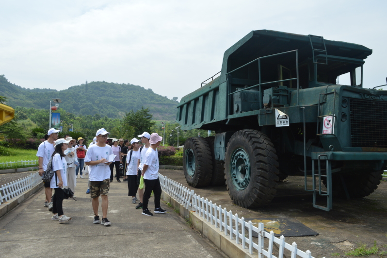 跟随讲解员的脚步,实践团走进了矿冶博览园。当地陈列着上世纪六十到九十年代服役于露天,井下开采的大型设备。被称作“清道夫”的美国50B伟步克矿用自卸车,主要运用于露天采场爆破碎石的清理与运输;前苏联的苏码汽车,因为其“双向行驶,以电供能”,所以成为了井下开采的强大帮手;由内蒙古产的中国重器洒水车,则凝聚了中国劳动人民的智慧,并成功应用于矿场降尘。