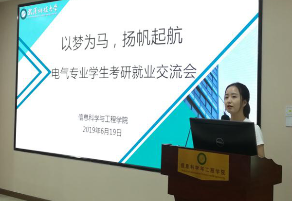 武科大网讯(通讯员 余元昕 桂泽红)6月19日晚,信息学院在教十楼学术报告厅举行2016级电气工程及其自动化专业学生考研就业交流会。电气工程系党支部书记蔡斌、系副主任张良力和5名2015级电气专业学生代表作为特邀嘉宾出席交流会。信息学院党委副书记杨福俊、2016级辅导员桂泽红,以及2016级电气专业全体学生参加此次活动。