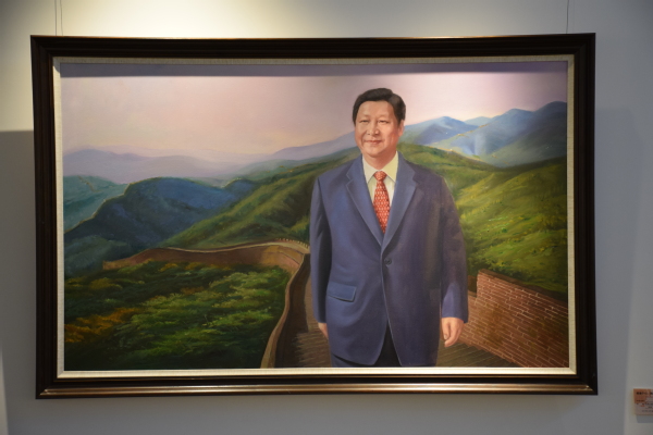 一等奖的油画作品之一《在路上》用细腻的笔法将画中的习近平总书记刻画得极为逼真,他身后是青山间蜿蜒的万里长城,喻指在总书记带领下,全民正在除腐的光明道路上不断前行。