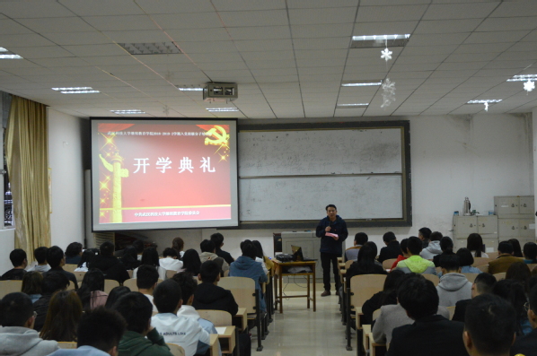 武科大网讯(通讯员曾元平)3月26日武汉科技大学继续教育学院2019学年度入党积极分子培训部开学典礼在洪山校区综合楼一楼合九教室举行。继续教育学院党委书记万远太、学生工作办公室主任万朝、团委书记毕元玲参加了开学典礼。典礼由毕元玲老师主持。