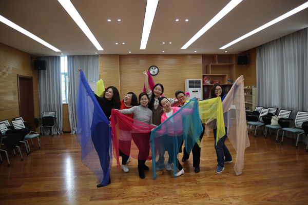 3月7日中午,我院工会邀请我院艺术教研室袁芳老师以“舞动课堂”形式,为全院女教工献上了一份庆祝国际妇女节的惊喜“礼物”,这堂别开生面、清新有趣的舞蹈课在学院艺术治疗实验中心“开讲”。