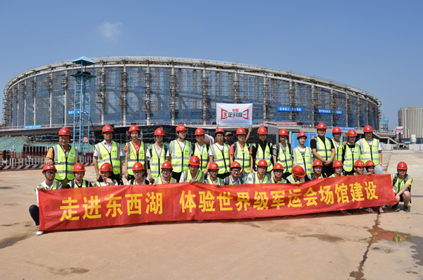 武科大网讯(通讯员蔡毅)6月10日下午,城市建设学院三十名2015级土木工程专业本科生与两位带队老师共同组成武汉科技大学城建学院观摩团,再次应邀来到中建八局土木公司武汉东西湖体育中心项目部,对武汉东西湖体育中心进行实地考察参观。