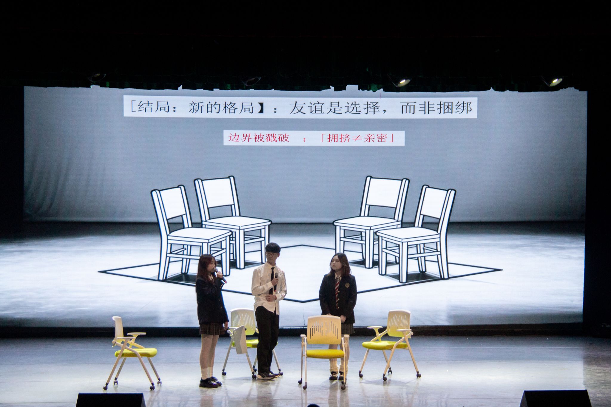 11月27日,我校“戏幕之下,真实之上”第二十二届心理情景剧大赛决赛在沁湖礼堂举行。来自医学部、机械工程学院、法学与经济学院、冶金与能源学院、外国语学院的6支参赛队伍入围决赛。决赛评出了一、二、三等奖、最佳男女主角奖、最佳编剧、导演奖。(孙正恒)