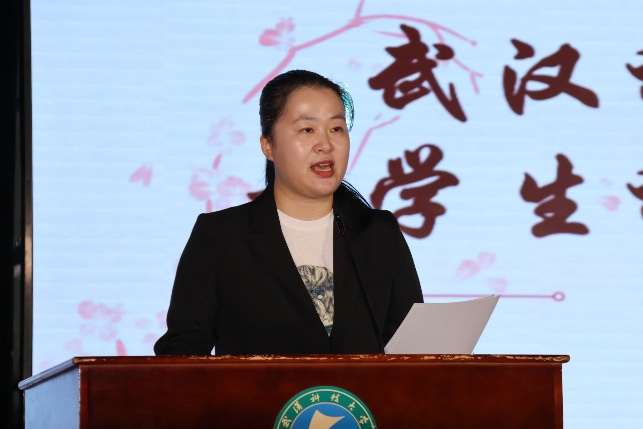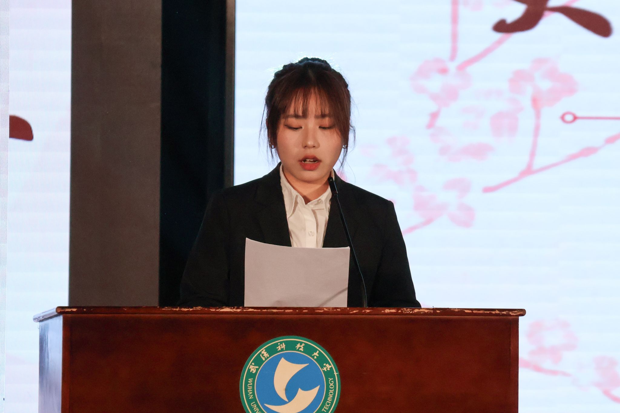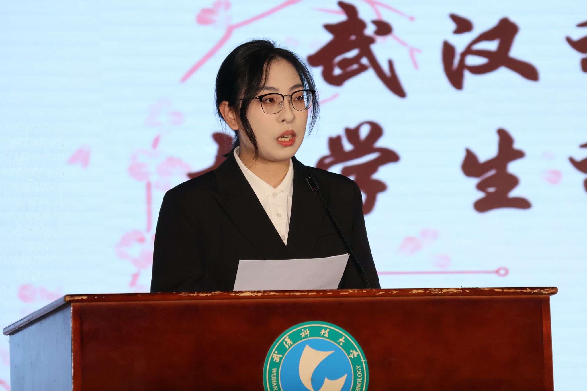 校团委副书记胡诗绮宣读《关于举办武汉科技大学第二十九届大学生科技文化艺术节活动的通知》 钟欣贝摄
