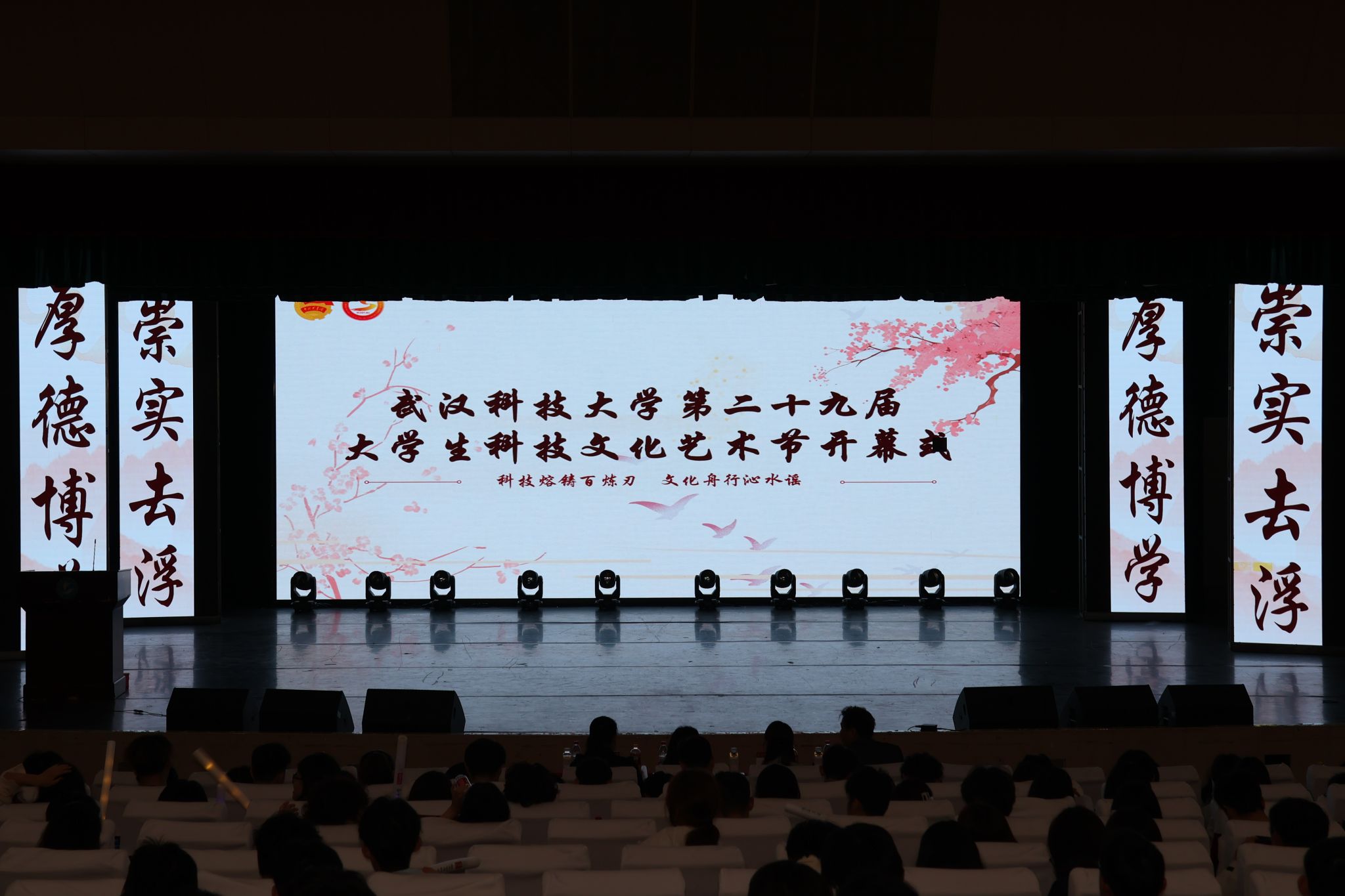 “青春旋律激荡科大风华,科创精神点亮时代征程。”4月12日下午,我校第二十九届大学生科技文化艺术节开幕式暨第二十三届校园十佳歌手大赛在黄家湖校区沁湖礼堂举行。近千名观众齐聚一堂,共赴科技与文化交融的盛会。(高文帅)